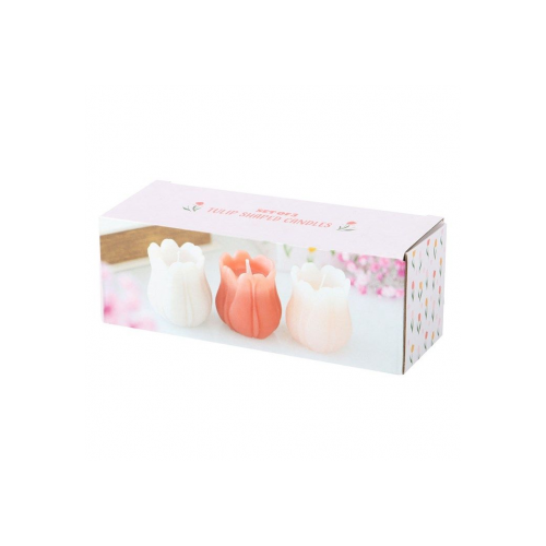 Brighten up a room with this set of three unscented tulip-shaped candles, perfect for spring table settings or floral-themed home decor.