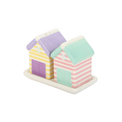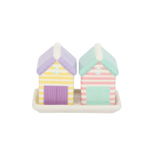 Bring a splash of seaside fun to mealtimes with this set of pastel ceramic salt and pepper shakers, shaped like charming beach huts and perched on a matching tray. Featuring printed detailing and soft coastal colours, this set makes a delightful gift or cheerful addition to any beach-themed kitchen.